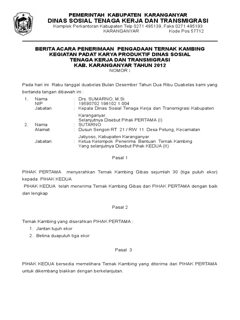 Berita Acara Serah Terima Kambing