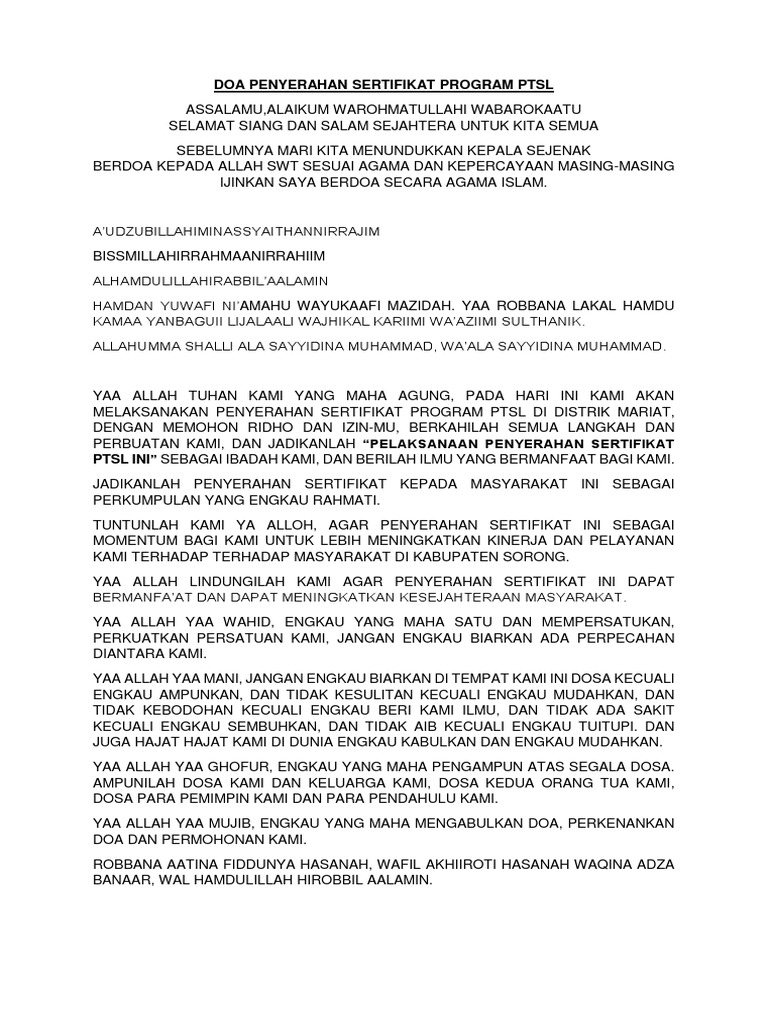 Teks Doa Penyerahan Bantuan Sosial Dalam Bahasa Indonesia