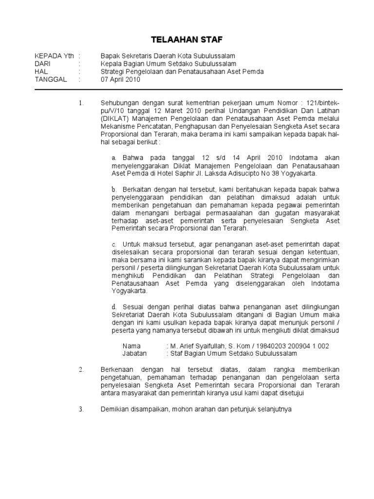 Demikian surat telaahan staf ini kami buat untuk ditindak lanjuti dan dilaksanakan sesuai arahan bapak kepala dinas bina marga dan sumber daya air. TELAAH KONSEP PENANGGULANGAN BENCANA INDONESIA Perpustakaan Nasional.