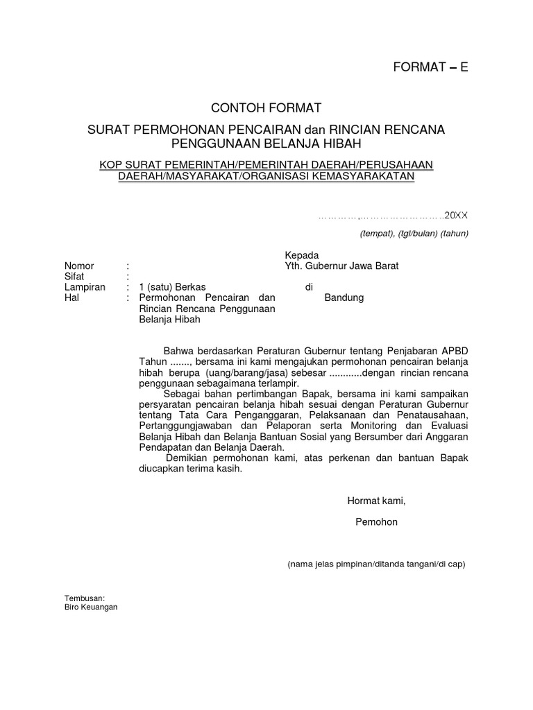Doc Contoh Format Permohonan Pencairan Hibah Tahun 2012 Zae Ahmad Academia Edu