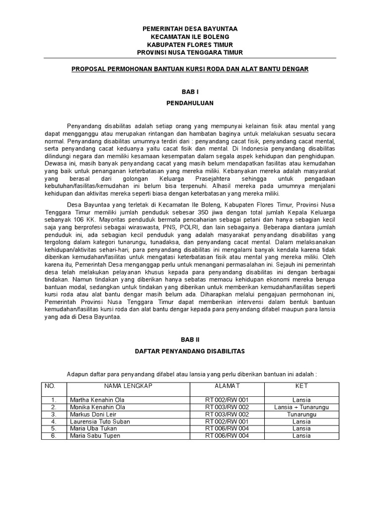 Contoh Proposal Bantuan Kursi Roda Ke Dinas Sosial Temukan Contoh